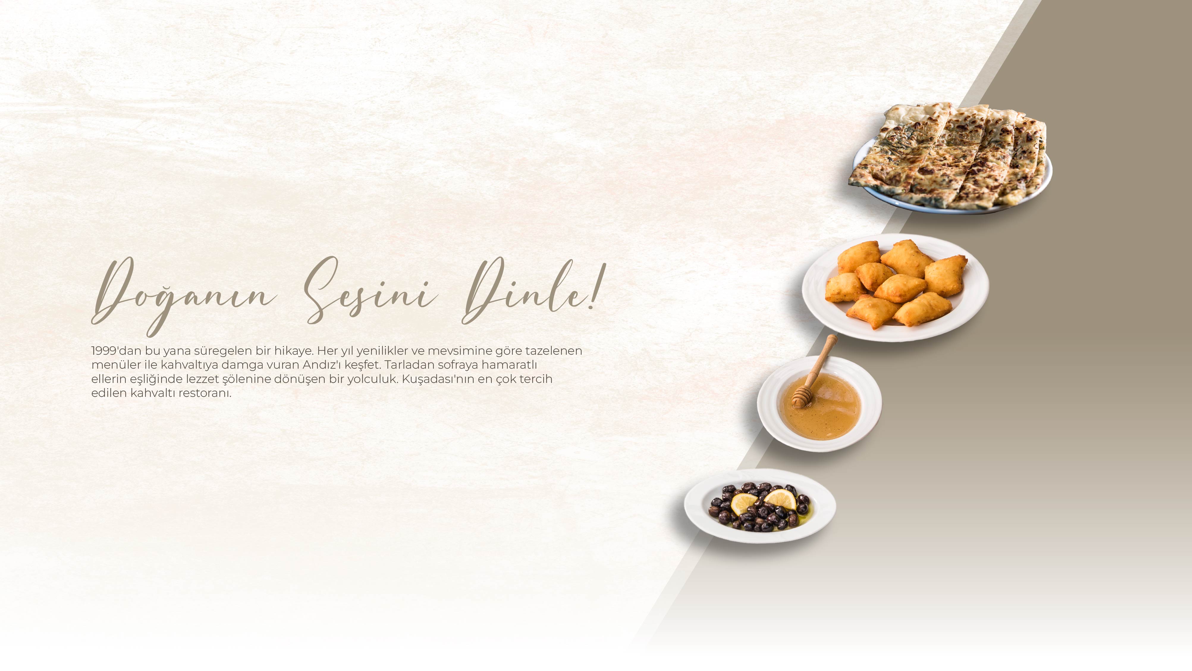 Kendi bahçemizden özenle topladığımız mahsüllerle hazırladığımız lezzetler, Ege Bölgesi'nin geleneksel tarifleriyle buluşuyor. Andız Kuşadası'nda kahvaltıdan, yöresel yemeklere kadar uzanan lezzet yolculuğuna davetlisiniz.